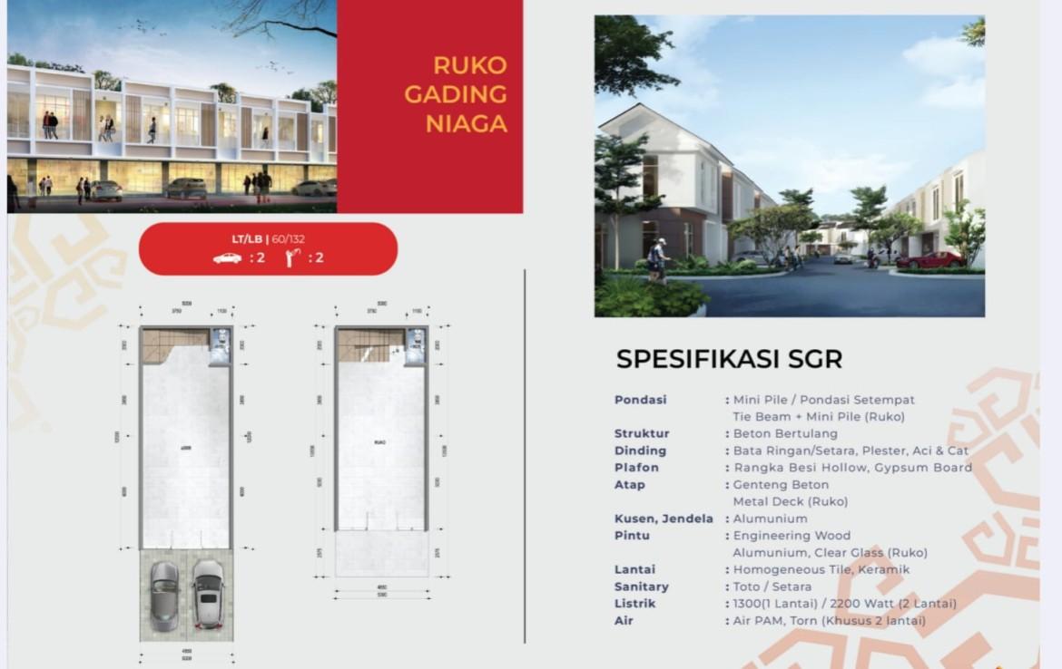 Type Ruko Niaga : LT (60) LB (132) 2 Carport 2 KM
